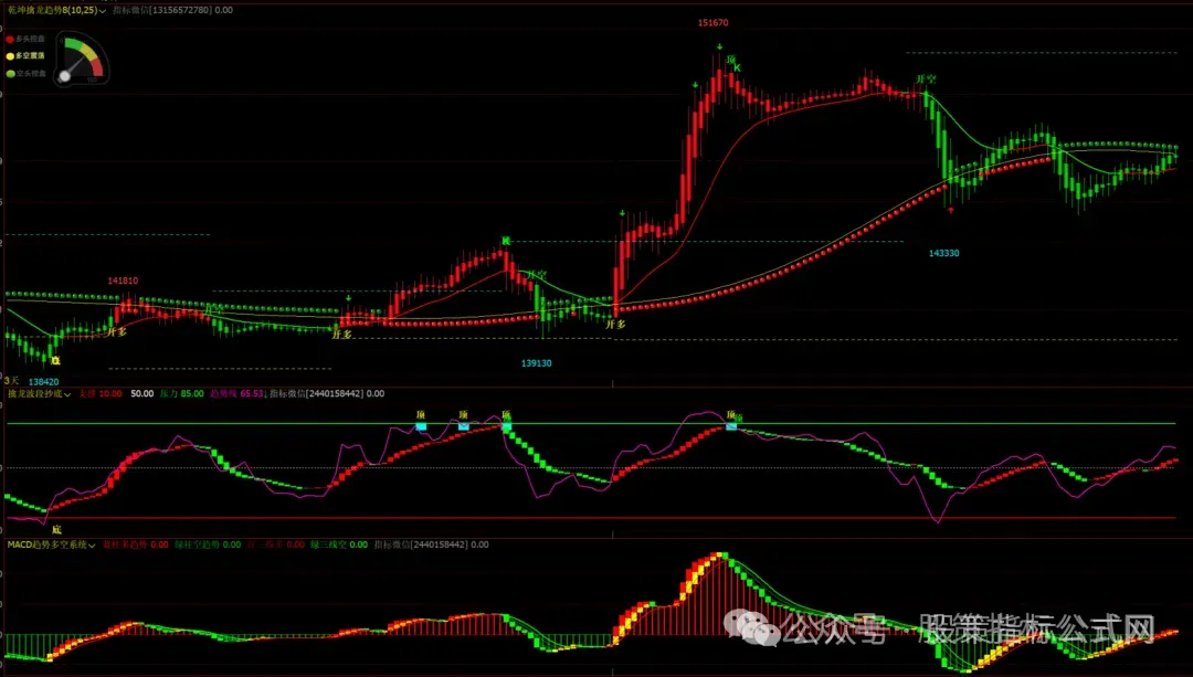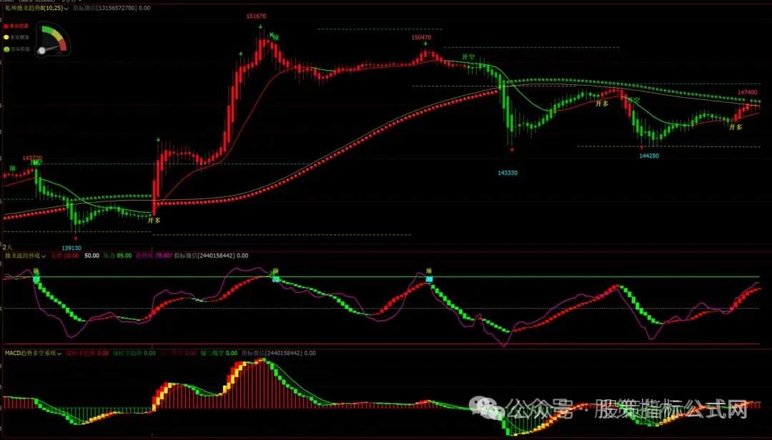 1、乾坤擒龙趋势主图,擒龙波段抄底幅图,macd趋势多空系统幅图,无未来函数!