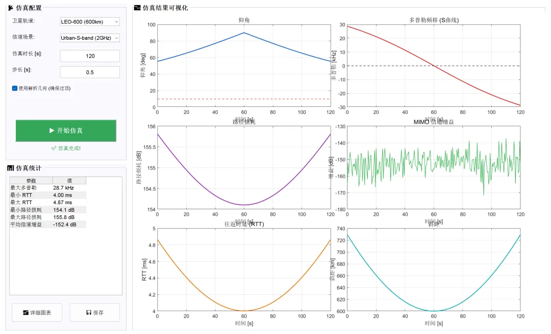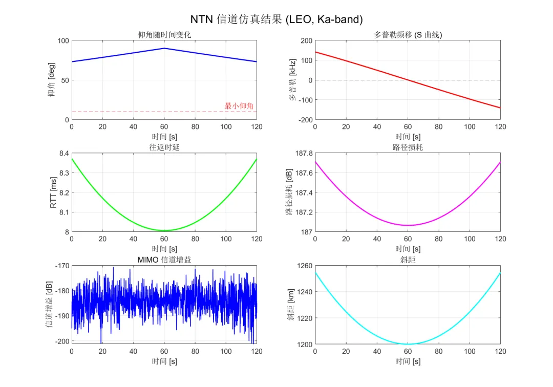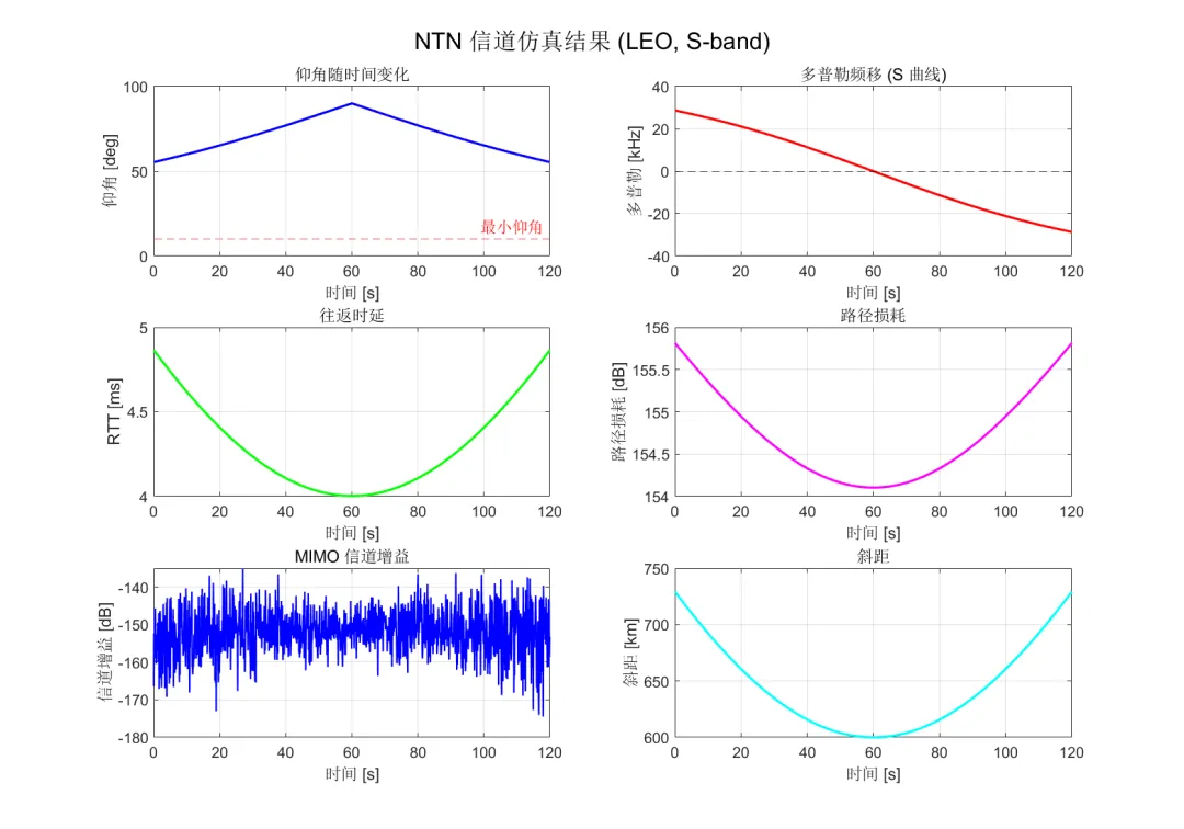 输出: LEO 卫星过顶期间的完整信道特性曲线。
