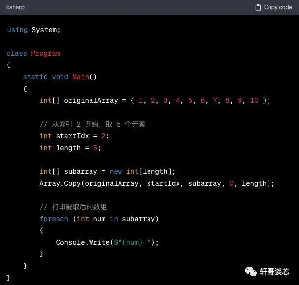 ▲ GPT-3.5的答复(代码有省略)