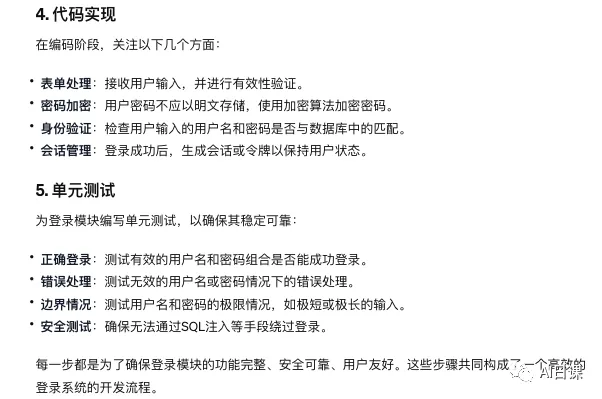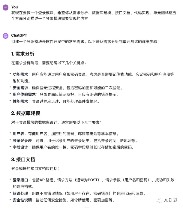 然后,我们找出其中核心的几步,借助GPT来辅助我们设计开发。这里我们以登录模块为例,因为大家都知道,一个软件或者系统也是由一个个的功能模块实现的,把一个功能模块实现了,其他的模块只是实现的功能不同,实现思路也是大同小异,如果一次性实现一个大的系统,由于涉及的内容过多,反而会没有重点,不利于大家的理解。