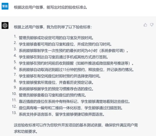 ▲ GPT-3.5生成的验收标准