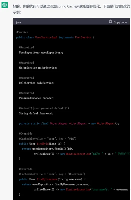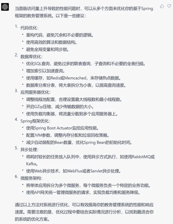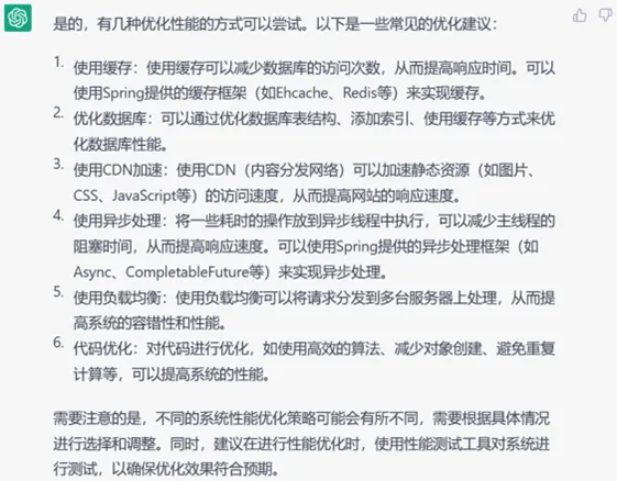我们尝试在一个现有系统上添加一些非功能性优化,首先询问ChatGPT关于优化的措施与具体代码,再让它将这些代码直接嵌入我们现有的系统中。