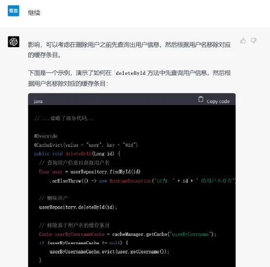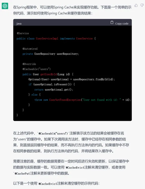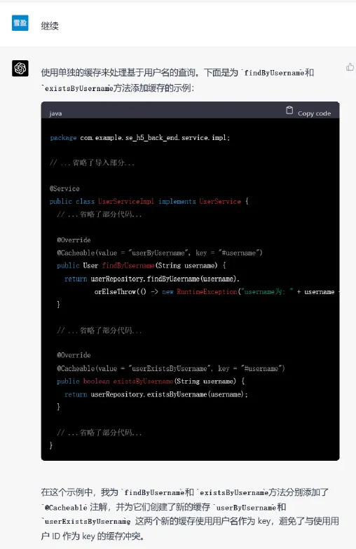 最后一步,我们给出了一段实际的代码,要求chatgpt在原来代码的基础上添加缓存功能。