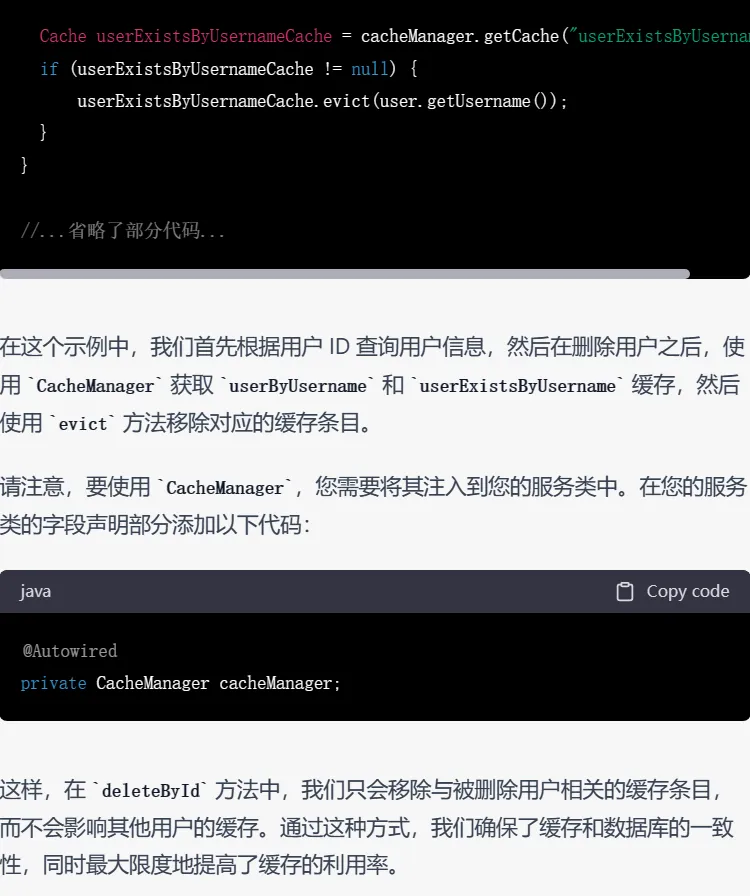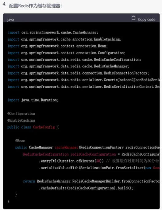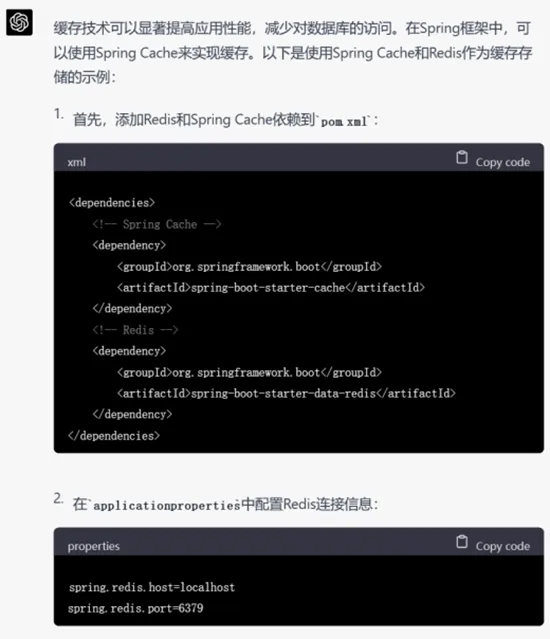 尽管GPT-3.5给出的结果已经让人很满意,但是GPT-4依然胜在给出了详细的配置缓存的步骤,说明其考虑到了实际开发中代码以外的因素。