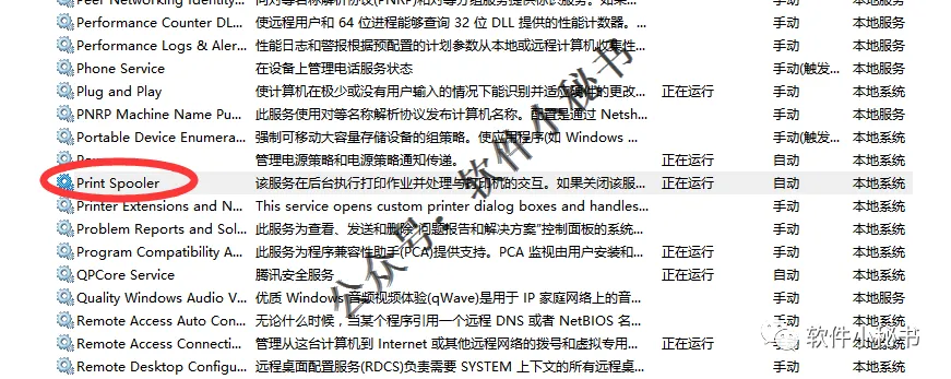 第3步:在服务中找到 “Print Spooler”,如下图所示。