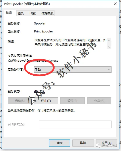 第16步:软件安装完成后,按照最开始的安装步骤去把Print Spooler的启动类型改为【自动】,不然原来的打印机就用不了了,如下图所示。