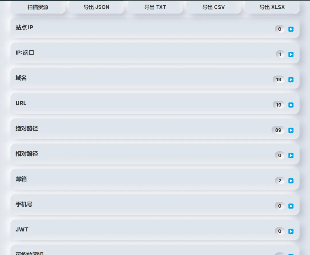 域名、JWT、疑似 Key/Token、邮箱、手机号