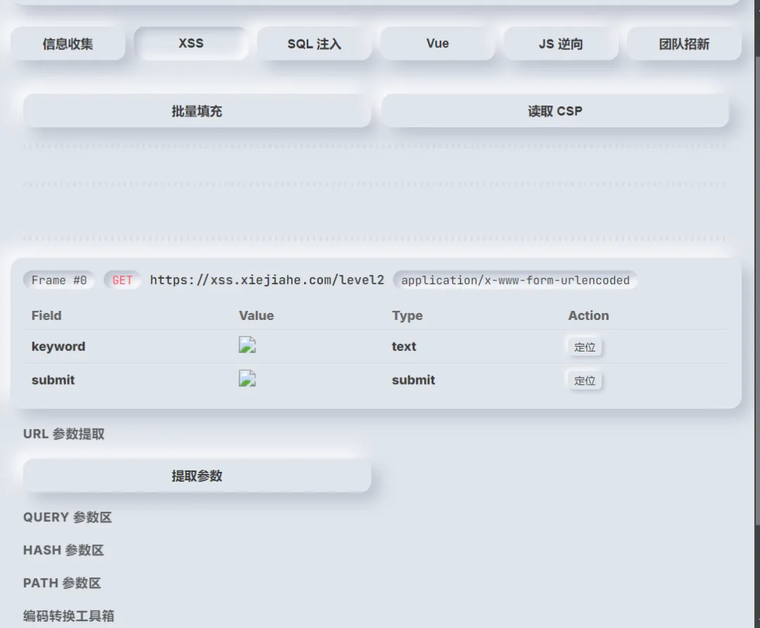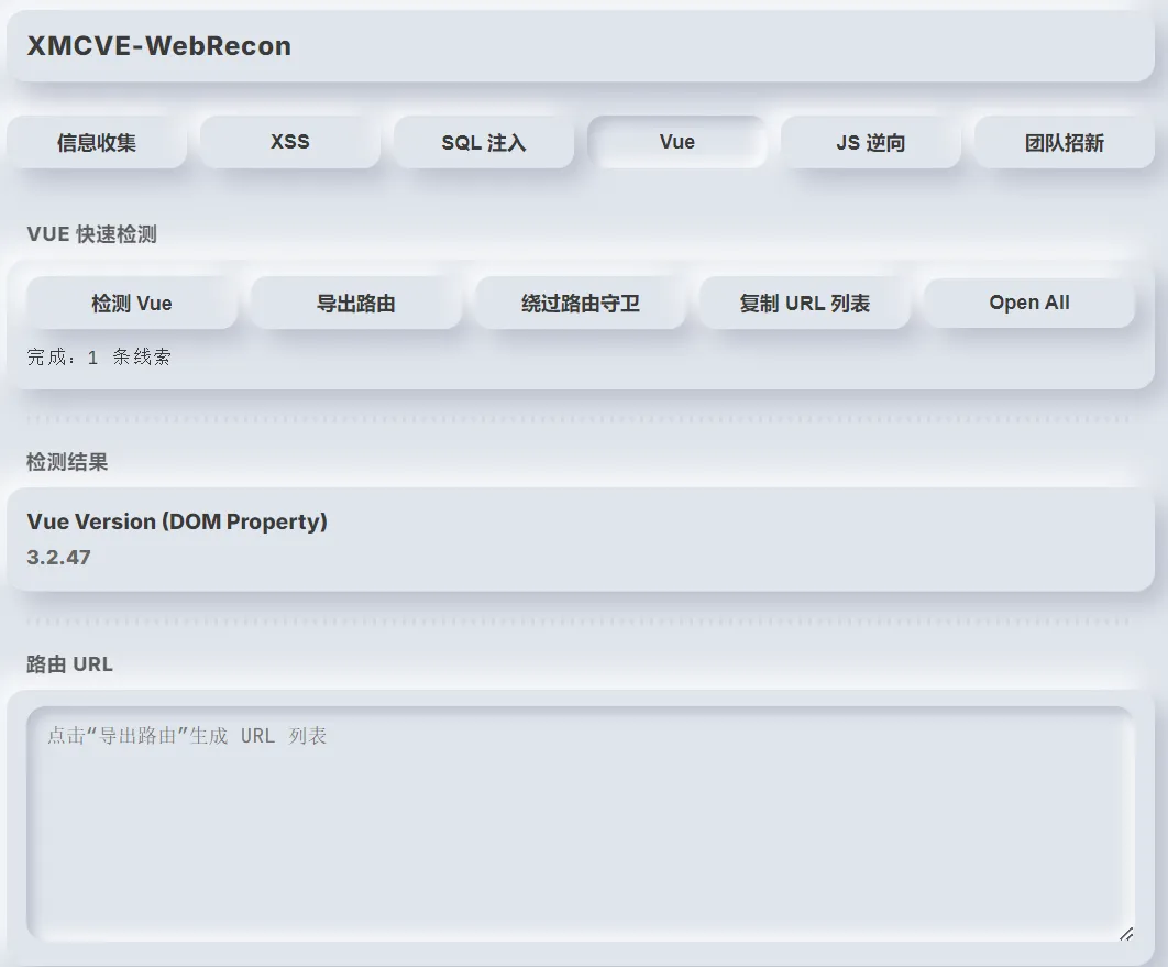 基于 Chrome Manifest V3 的前端安全辅助插件,面向 Web 安全测试场景,集成输入点发现、CSP 读取、资产嗅探、框架指纹、SQL HackBar、Vue 路由分析、JS 开关与 Fuzz 字典扫描等能力,帮助在合法授权范围内更高效地完成排查与验证 -