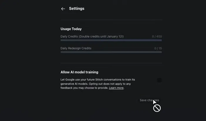 那在使用setti之前呢,我们先来设置一下隐私权限,点右上角选择这个privacy notice,然后点击这个settings,那可以看到这里显示的呢就是这个stitch提供的免费额度。