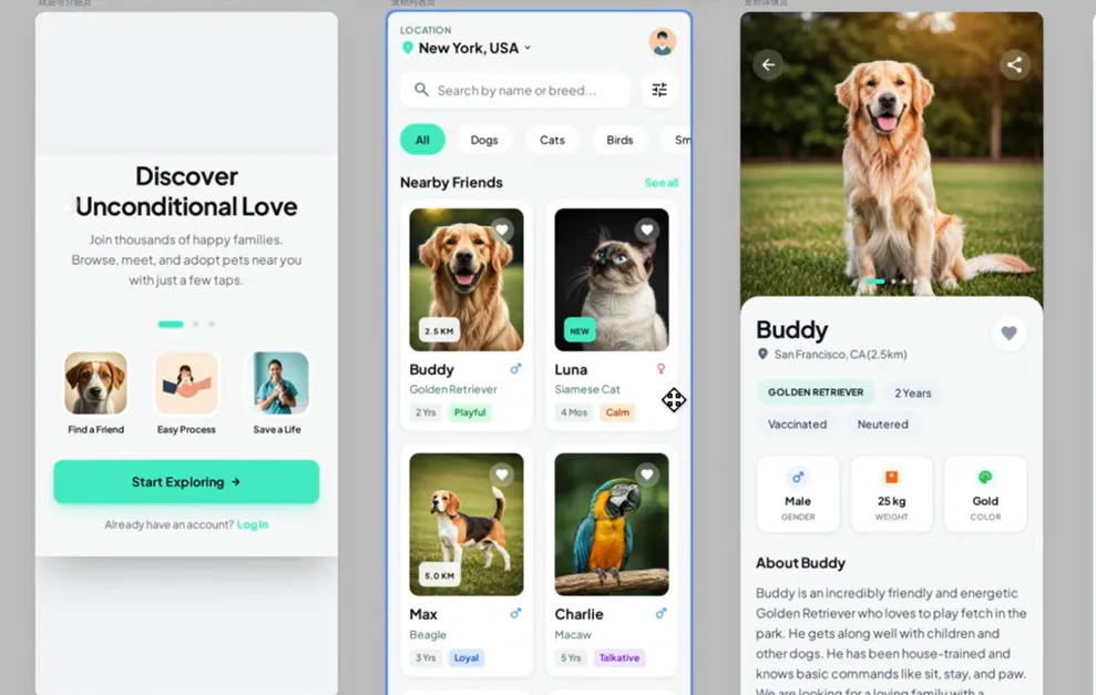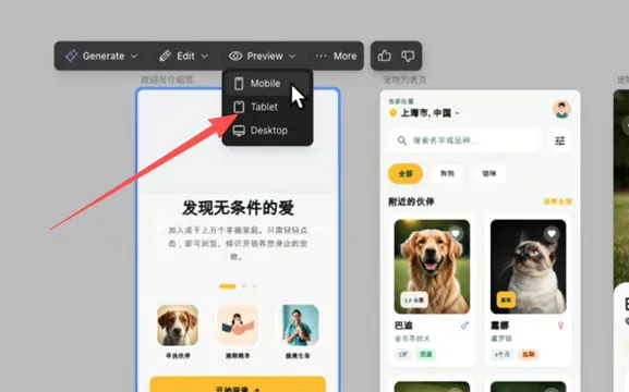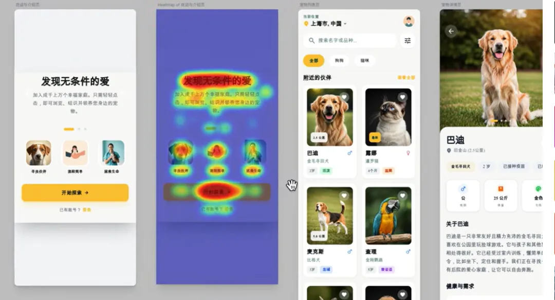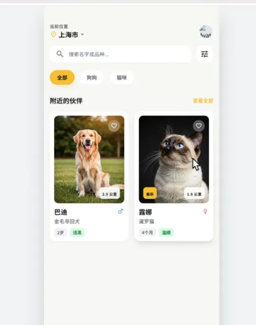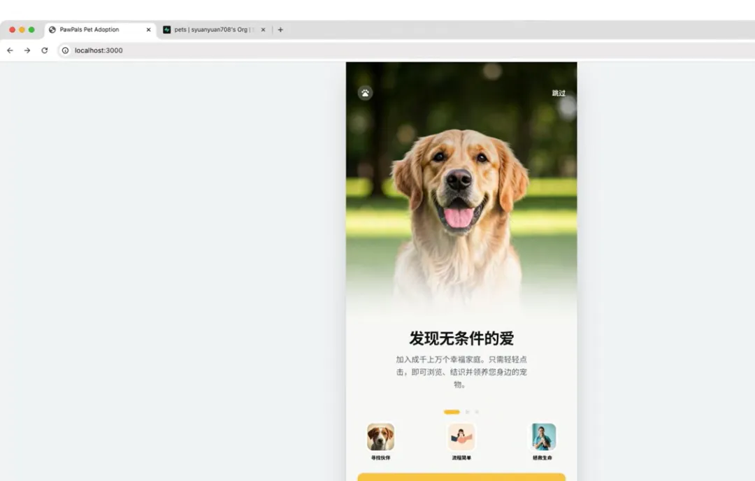 这是我使用这个web code流程开发的一个在线领养宠物的app下面我们就以这个app为例来详细介绍这个开发流程。