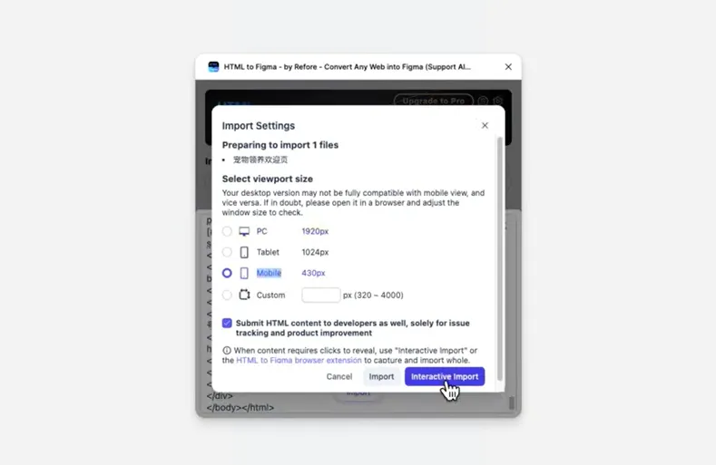 我们点击下面这个插件,然后我们选择使用这个stitch code to figma这个插件来导入这个设计稿。
