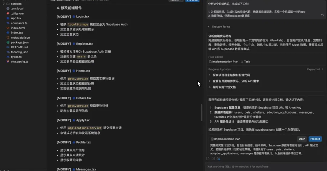如果确认没有问题,我们就点击这个proceed,让他按照这个计划去生成代码。