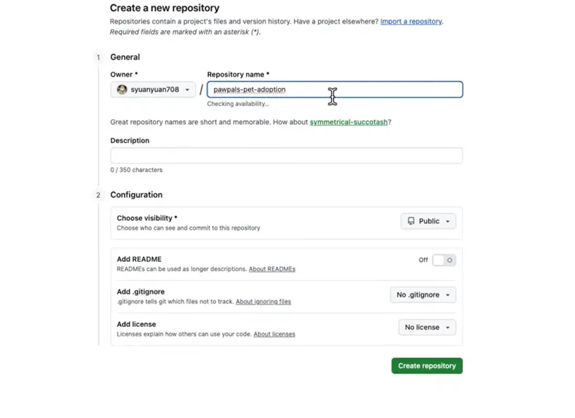 接下来按照这个说明去GitHub。新建一个项目,输入这个项目名,然后添加一个项目,描述这个可见性,选择public,然后点击创建,创建完成以后,复制这个项目的SSH网址,回到IT gravity,把这个网址发送给AI,它就会帮我们自动把这个代码push到GitHub。