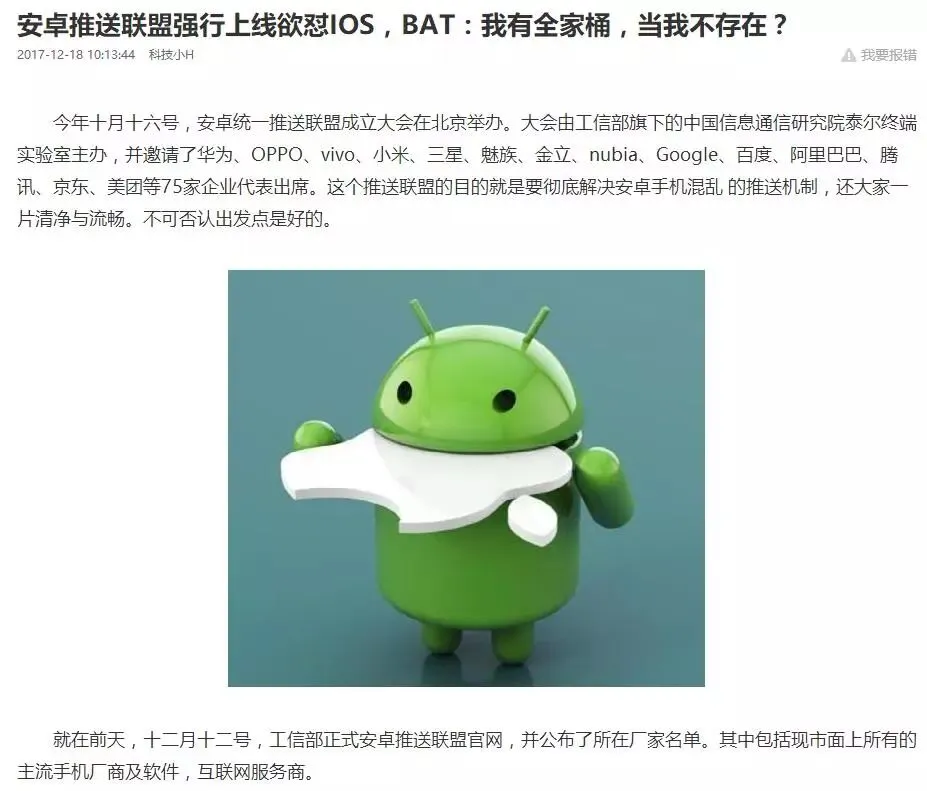 不过,现在的安卓乱象在这之后,可能会得到缓解,工信部旗下的泰尔实验室联合多家厂商,制定安卓统一推送服务技术标准,旨在为国内的消息推送服务建立统一的标准,为终端用户提供更好的手机使用体验。