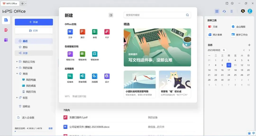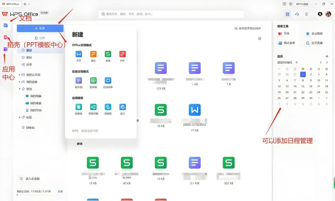 广告去除,界面优化:去除广告和不必要的功能,使界面更简洁,提升使用体验。包括:删除左侧界面的日历、WPS便签、会议、统计表单(广告项)。