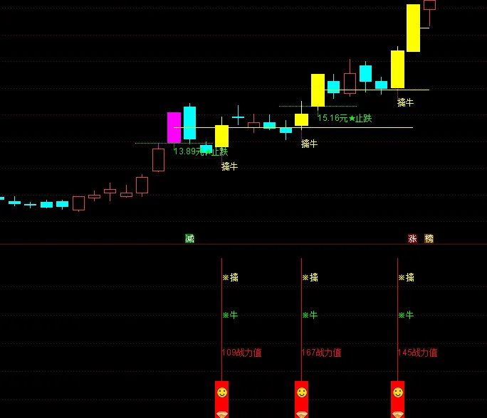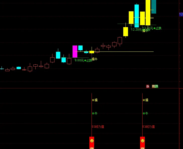 DRAWTEXT(Var16,L*0.965,’擒牛’),COLORYELLOW;