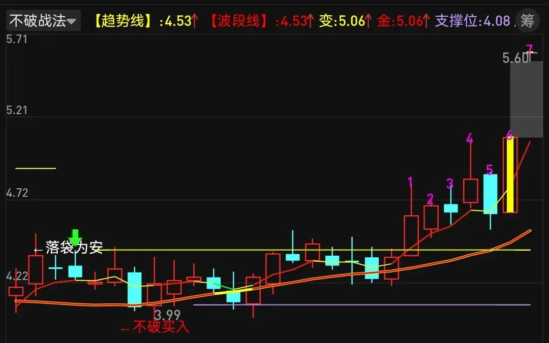 DRAWTEXT(CROSS(S,卖1),S,’←落袋为安’),COLORWHITE,LINETHICK1;