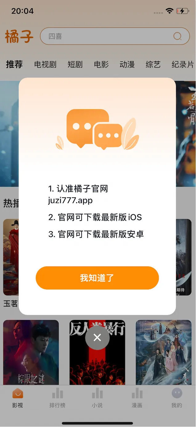 最新升级iOS上架影视APP:橘子影视(二号备用链接防丢失)