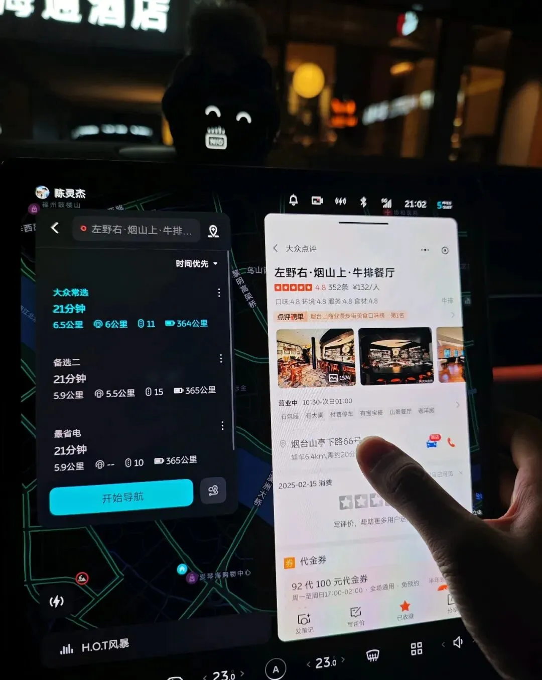 当系统感知到是午饭时间,且你的车辆位置在陌生商圈时,它不需要你打开任何 APP,而是直接在地图导航层浮出一张卡片:“前方 6.5 公里有一家 4.8 分的牛排餐厅,是否导航?”
