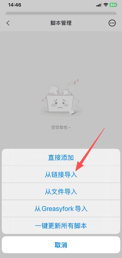 点击脚本-右上角+号-点击下载脚本,输入脚本链接即可!