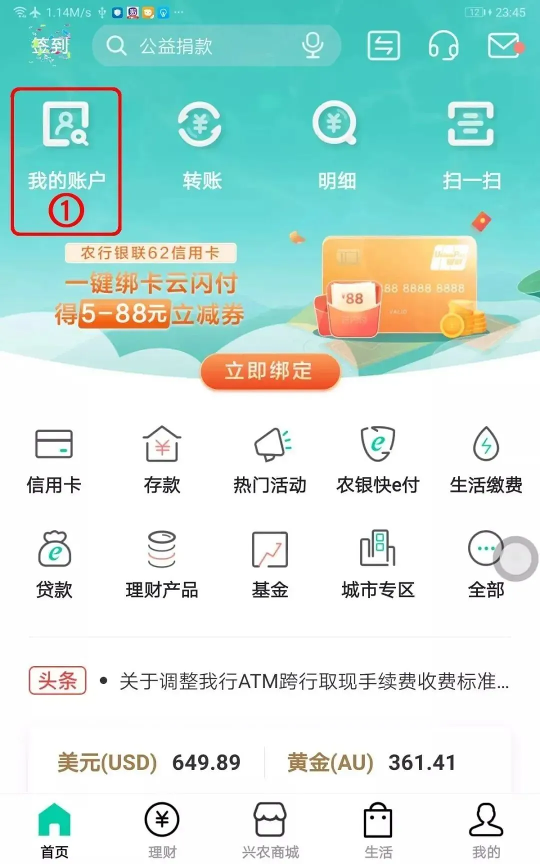 打开【农业银行APP】,点击【我的账户】