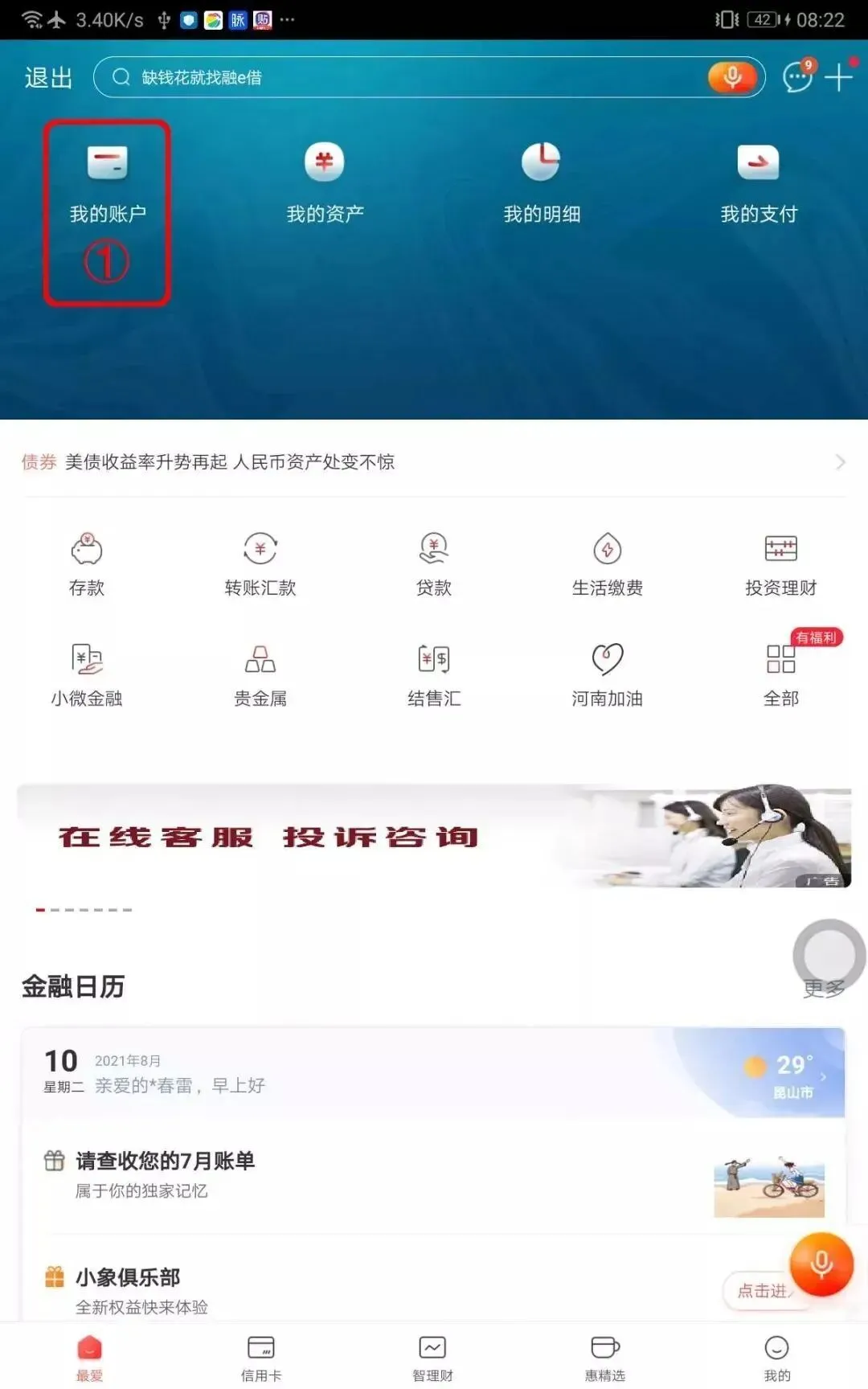 下载登录【厦门银行APP】,首页点击 【账户】模块进入账户总览;