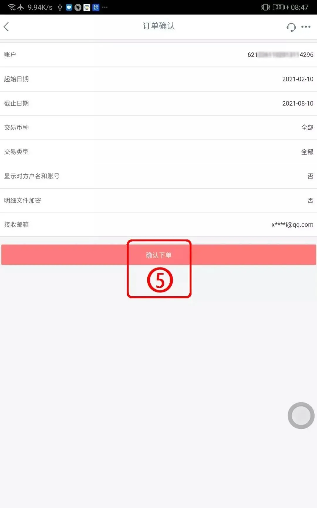根据需求,选择账户,期限,填写邮箱,勾选【我已阅读并同意】,提交。