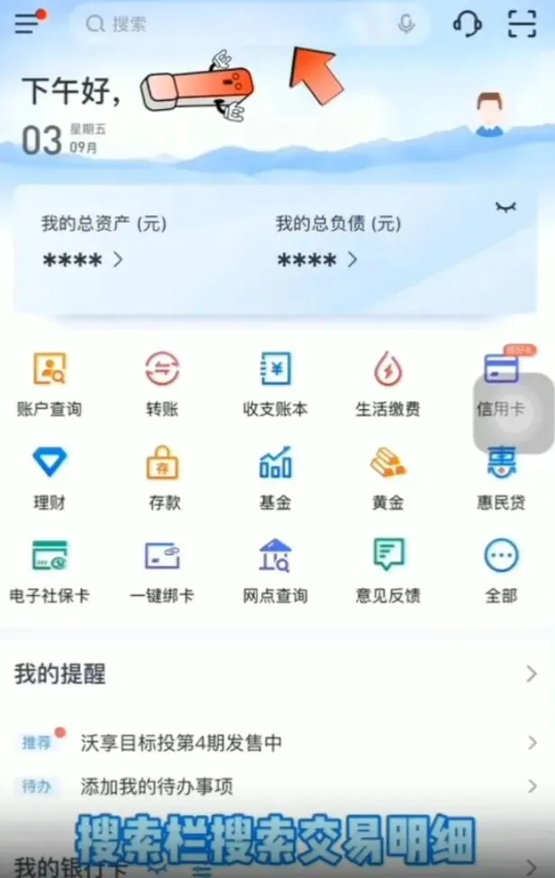 下载登录【兴业银行 APP】,首页上方搜索框输入【明细】;