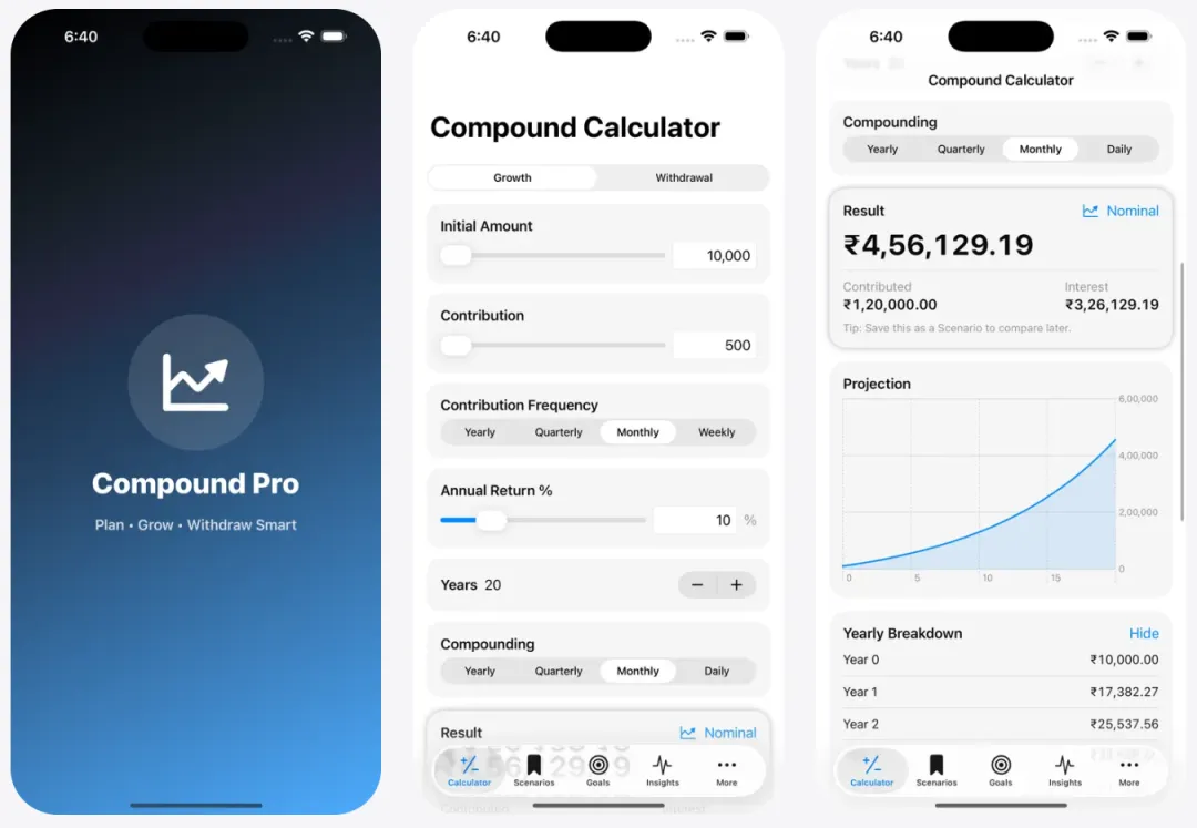 简介:一款复利计算器,能让你清晰了解金钱随时间的增长情况。