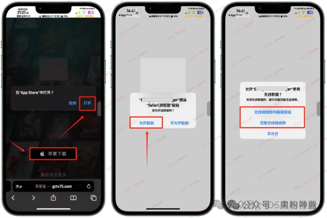 教程:浏览器打开官网:gz996点com,点击【苹果下载】,点击【打开】,会跳转App Store进行下载(如果自己搜索软件名字无法使用哈!)打开软件选择【允许粘贴】-【允许网络连接】–【不要切换界面,等待加载100%】即可,如果不行多试几次哈~这很正常!