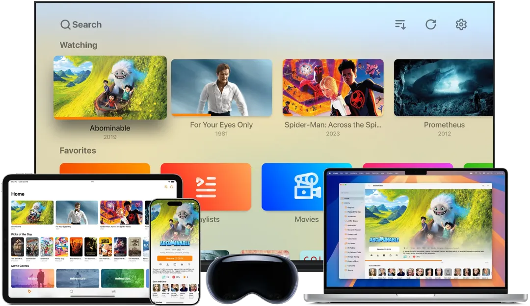 2. Apple 生态方案:Plex/Emby/Jellyfin(服务器)+ Infuse(Apple 客户端) -