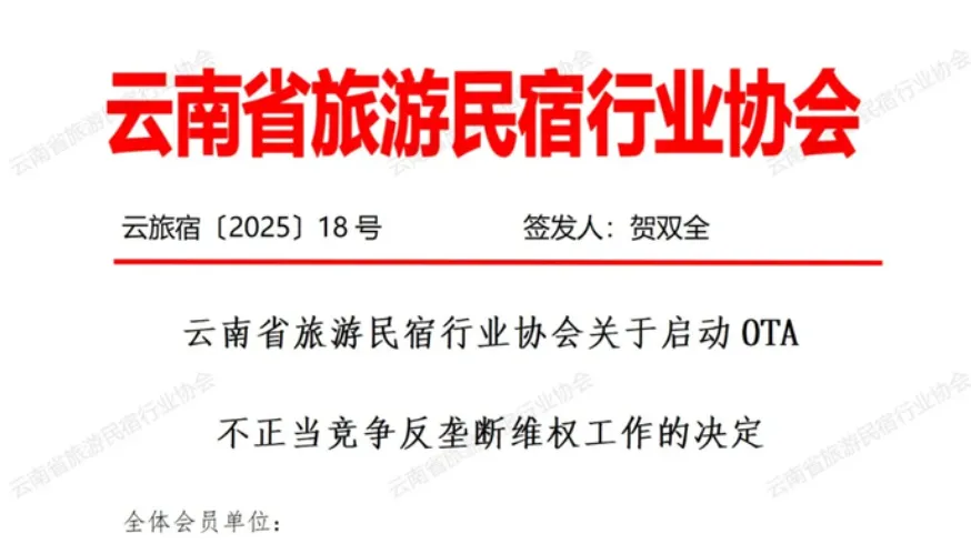 例如2025年11月,云南省旅游民宿行业协会公开指出,携程要求民宿签署排外的协议,否则将被搜索降权、流量屏蔽。部分民宿因拒绝签署,订单量骤降70%以上。