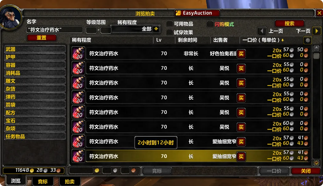 《魔兽世界》时光服:拍卖行插件必备:EasyAuction-时光服拍卖行助手