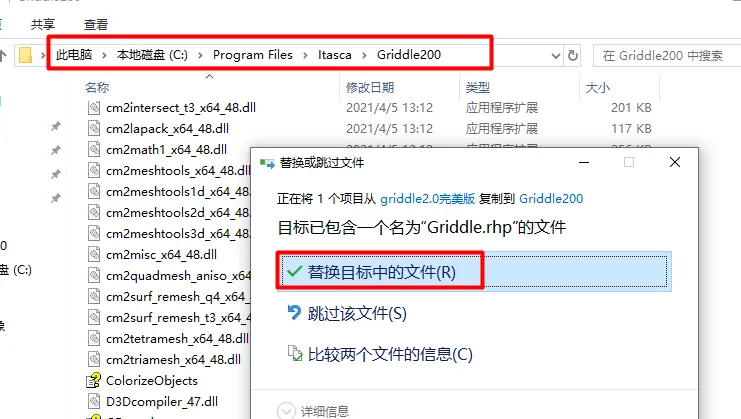 11.找到第5步时设置的griddle安装目录,粘贴并替换。