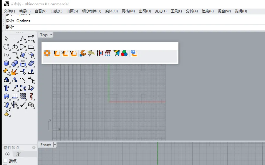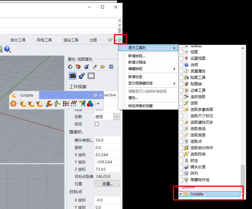 12.桌面打开犀牛软件,如果打开时没显示griddle菜单,可在下图位置设置显示