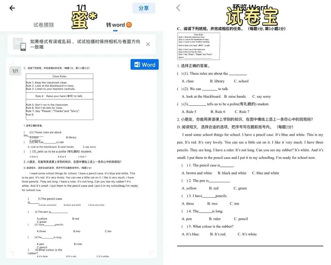 同样的试卷擦除后打印,左:蜜* 右:试卷宝 (可放大图片对比)