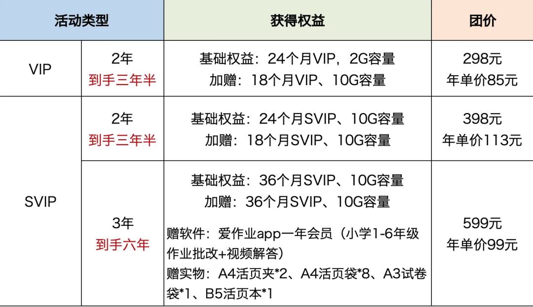 苏蒂比较推荐的是VIP2年和SVIP6年的规格。这次活动额外加赠10G容量是非常划算的,加上获赠的容量,基本上是用不完的了。