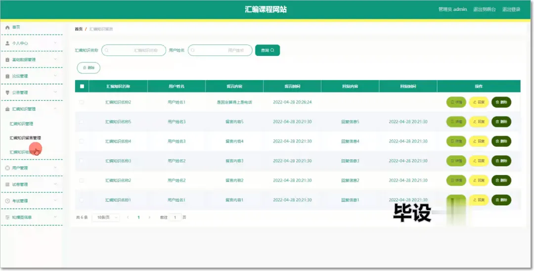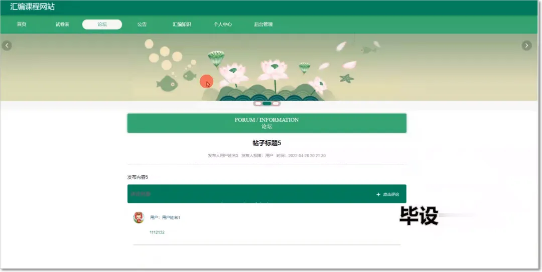 【万字文档+源码】在线学习平台 已关注 关注 重播 分享 赞 视频详情 1.项目简介 在线学习平台,文档+源码,资料齐全。一起加油,一起努力! 在线学习平台分为管理员还有用户两个权限,管理员可以管理用户的基本信息内容,可以管理公告信息以及公告的租赁信息,能够与用户进行相互交流等操作,用户可以查看汇编知识信息,可以查看公告以及查看管理员回复信息等操作。 2.项目技术栈 后端框架:springmvc+spring+mybatis 前端:vue 数据库:mysql 项目构建工具:maven 3.项目运行部分截图 4.项目万字文档 5.源码获取 关注熊猫IT技术公众号,获取客服人员二维码,扫码添加好友咨询!