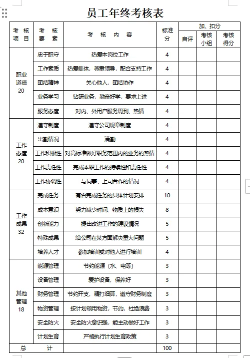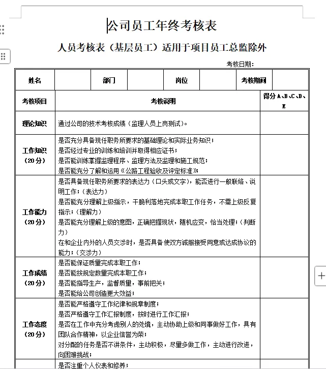 2026员工年终考核表|word可编辑(免费分享)