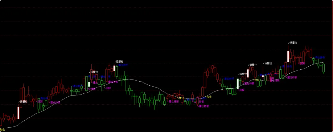 DRAWTEXT(BUYSIG, L, ‘↖建仓持股’), COLORMAGENTA;