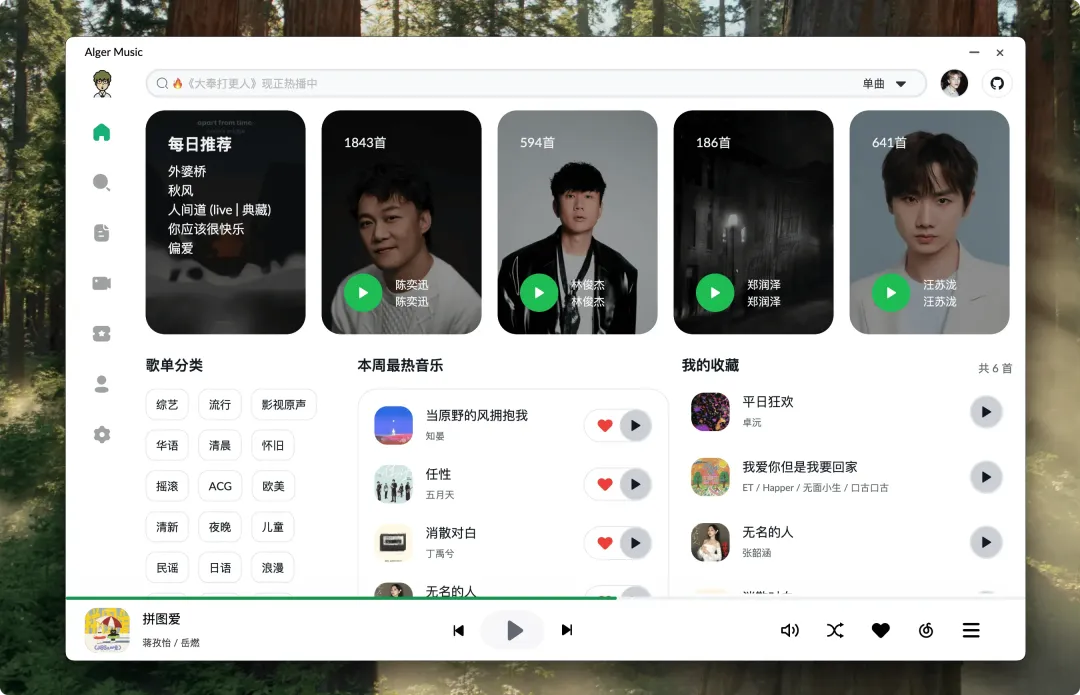 🔸 支持平台:全平台🔸 开源地址:github.com/algerkong/AlgerMusicPlayer🔸 官网:music.alger.fun