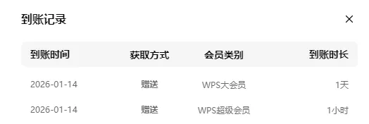 注:在我预计发出这篇文章的今天,发现此处十点领取的选项中只有“时长1h的WPS超级会员”了。