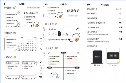 它的小组件板块,包括:3种小号组件、3种中号组件、2种大号组件;它支持心情日签功能,可以选择心情、编辑内容、上传图片。
