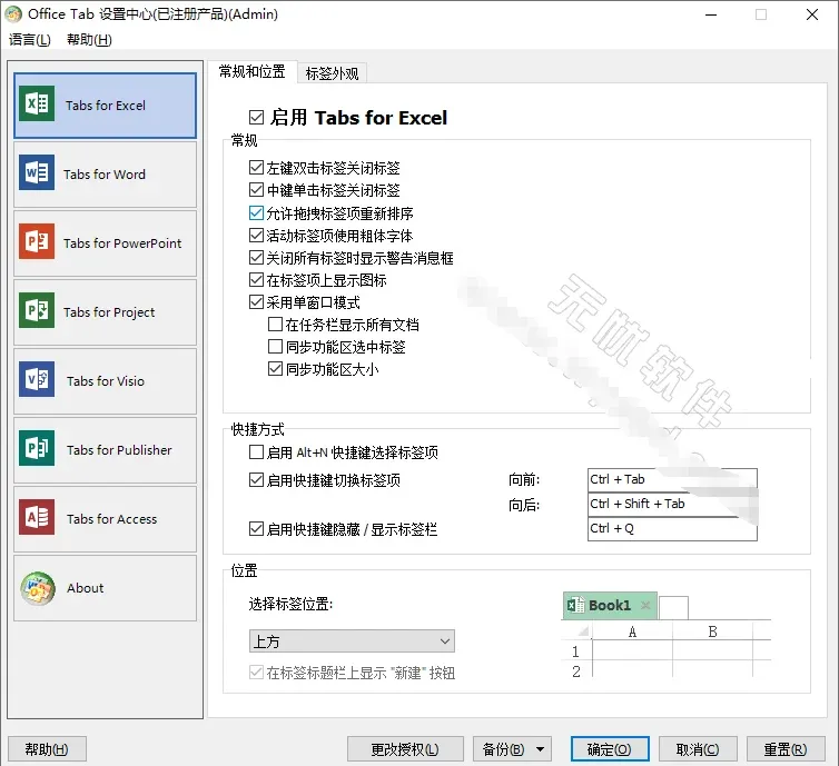 Office Tab,微软Office多标签页插件,轻松实现Office标签页效果!Office Tab企业版是一款第三方Office办公软件的扩展插件,支持Microsoft Office 2010、2013、2016、2019、2021和Office 365实现选项卡式浏览,支持自定义标签外观、标签显示位置、标签关闭方式、随意拖拽标签等,提高浏览处理文档效率!