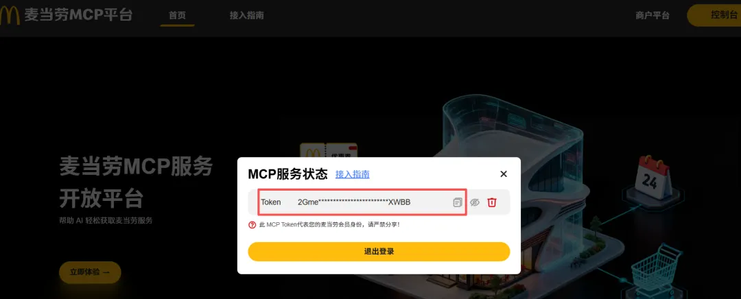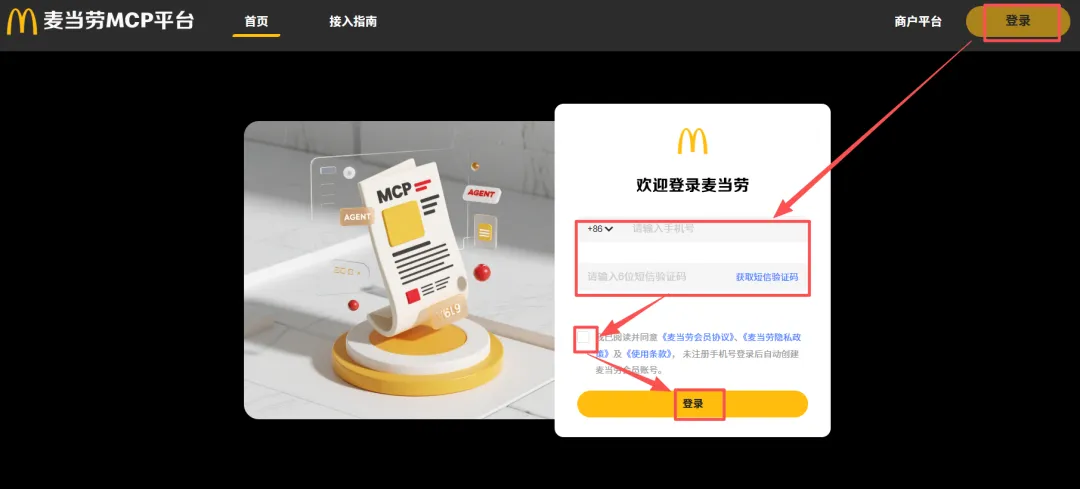 1. 访问麦当劳的 MCP 开放平台,使用你点餐的手机号登录。