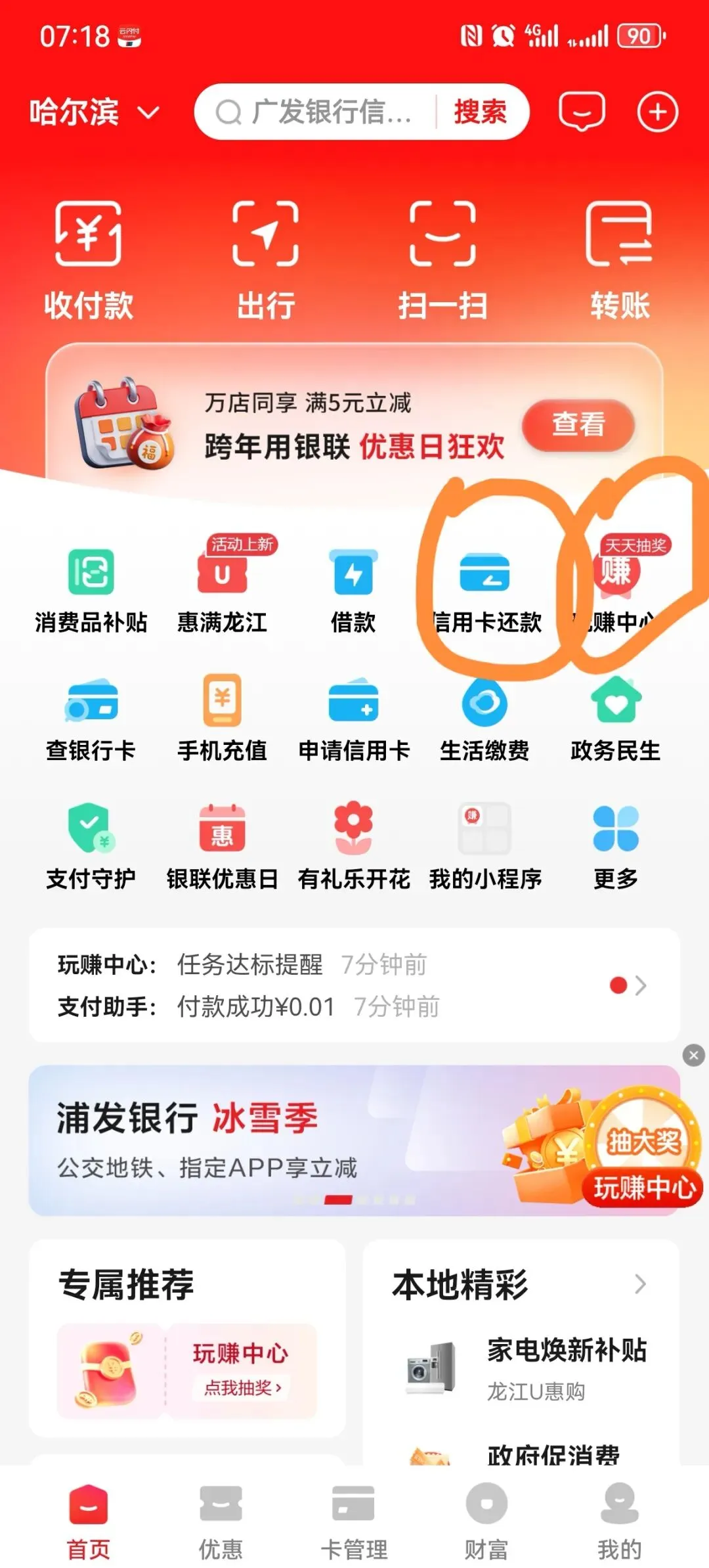 云闪付APP出行码,光大信用卡1分钱,去玩赚中心抽券还信用卡