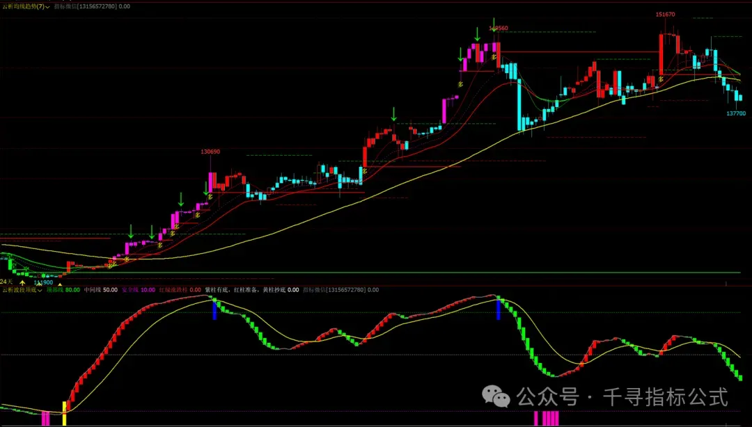 云析波段顶底幅图:红绿柱,趋势线,顶底柱