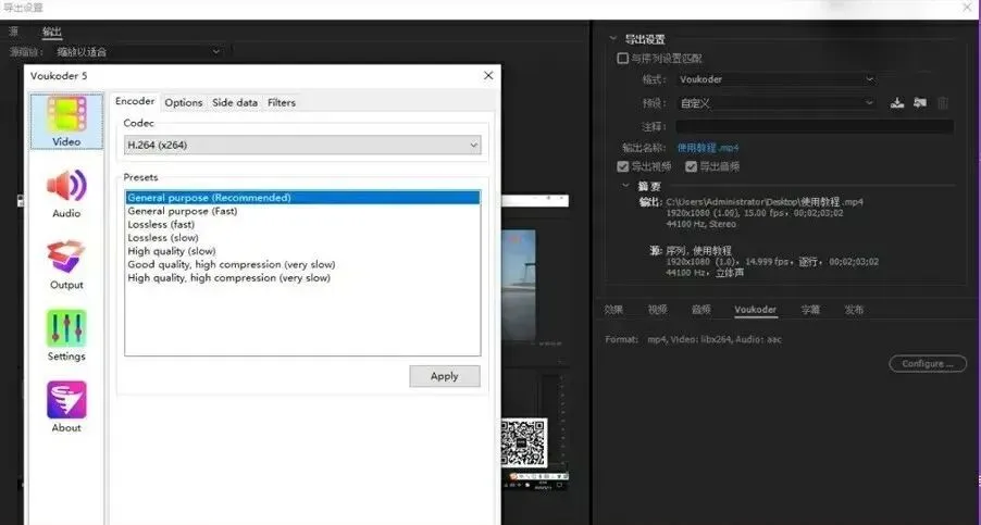 所以有了voukoder 你完全可以直接输出一个高画质且低码率的视频,不用先导出再到小丸进行二次压制了。既方便又保证画质哦!