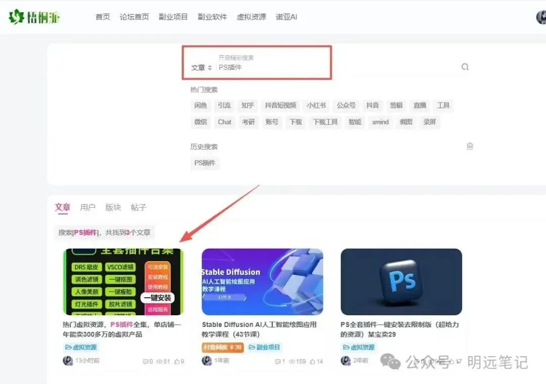 首先,资源大家不用到处去找了,已经给大家准备好了,打开梧桐有术资源站或者公众号,直接在上面搜索:PS插件,就能找到资源。
