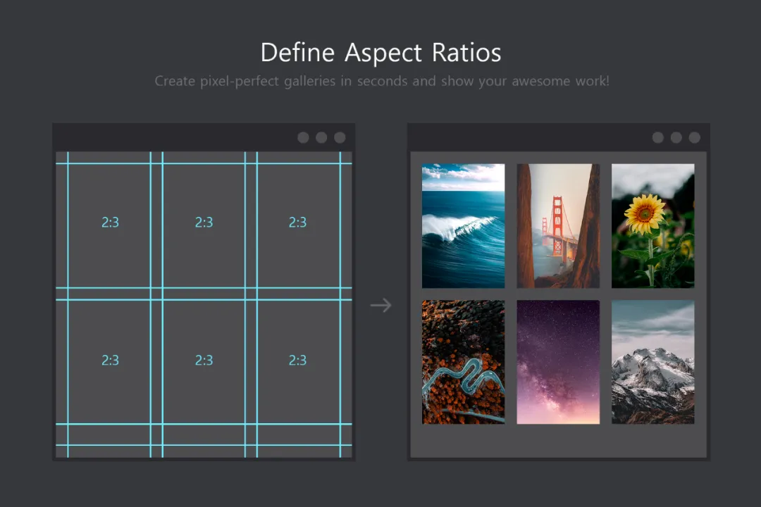 7、完全可定制的网格布局(为列/间隙指定数量,间距,重量,长宽比与边距)